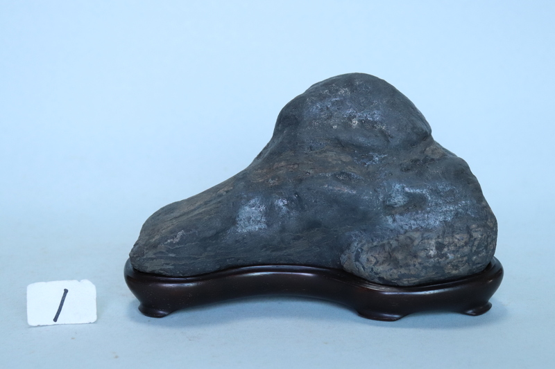 持ち込み古い山形のウブ石 比重大 紫檀台座 珍品