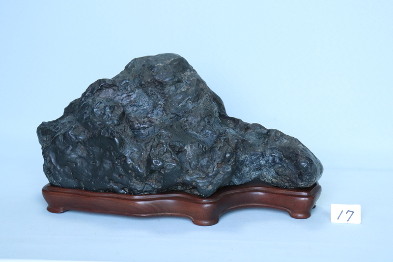 持ち込み古い山形石の逸品 ウブ石 紫檀台座 重さ約9キロ