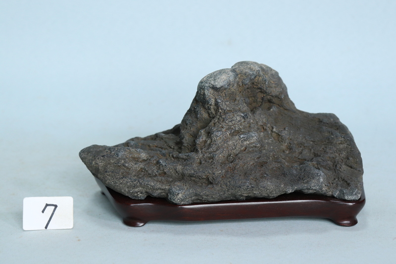 硬質で古色ある山形石 ウブ石 紫檀台座