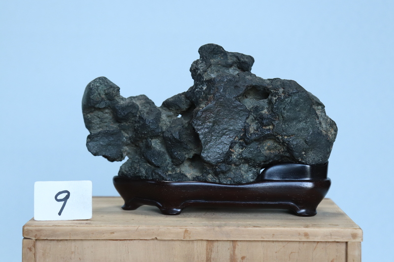 持ち込み古い京都八瀨真黒石 ウブ石 ヌケあり 紫檀台座 桐箱