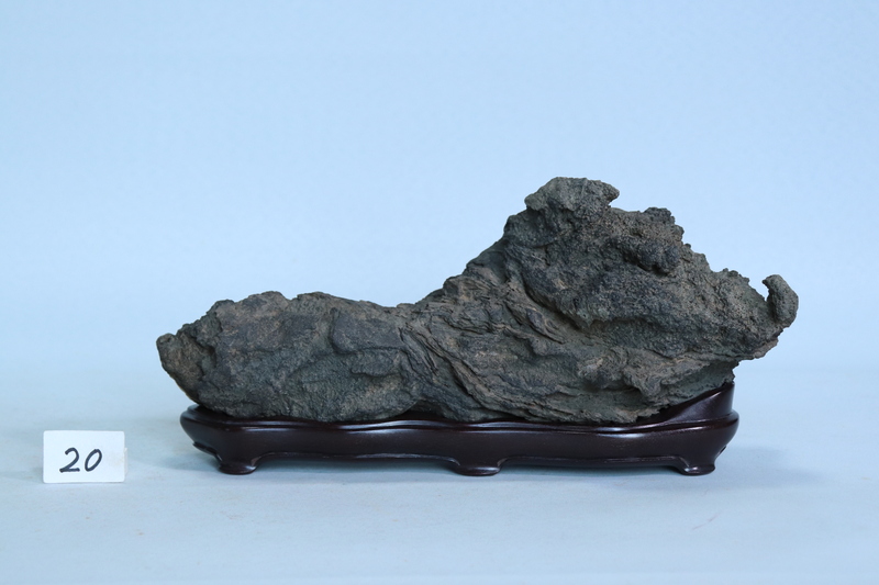 硬質な京都八瀨真黒石 持ち込み古いウブ石 紫檀台座