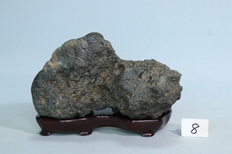 重厚な石質 古色ある岩山 ウブ石 紫檀台座
