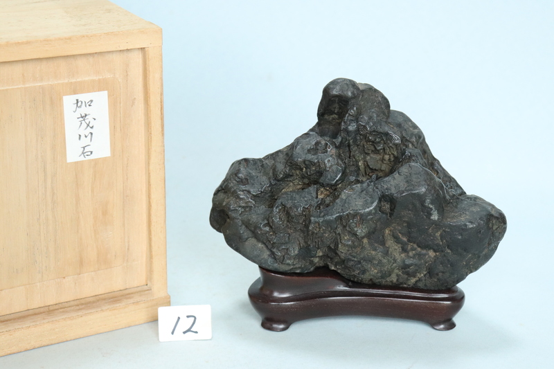 持ち込み古い真黒の雅石 ウブ石 紫檀台座 桐箱