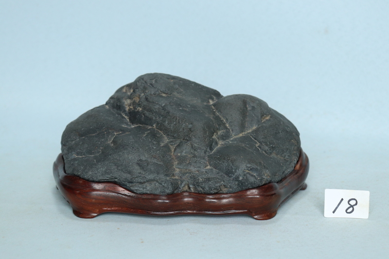 のどかな山間の景色 持ち込み古い真黒石 ウブ石 鈴木広寿作紫檀台座